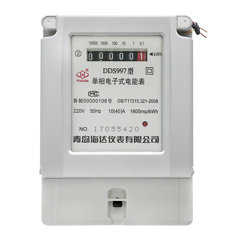 DDS997型单相电子式电能表,广泛用于计量居民住宅、机关、商店等照明,家电等的用电量。该表采用超低功耗集成电路技术和SMT制造工艺,用以计量额定电压220、额定频率50Hz的交流单相有功电能。